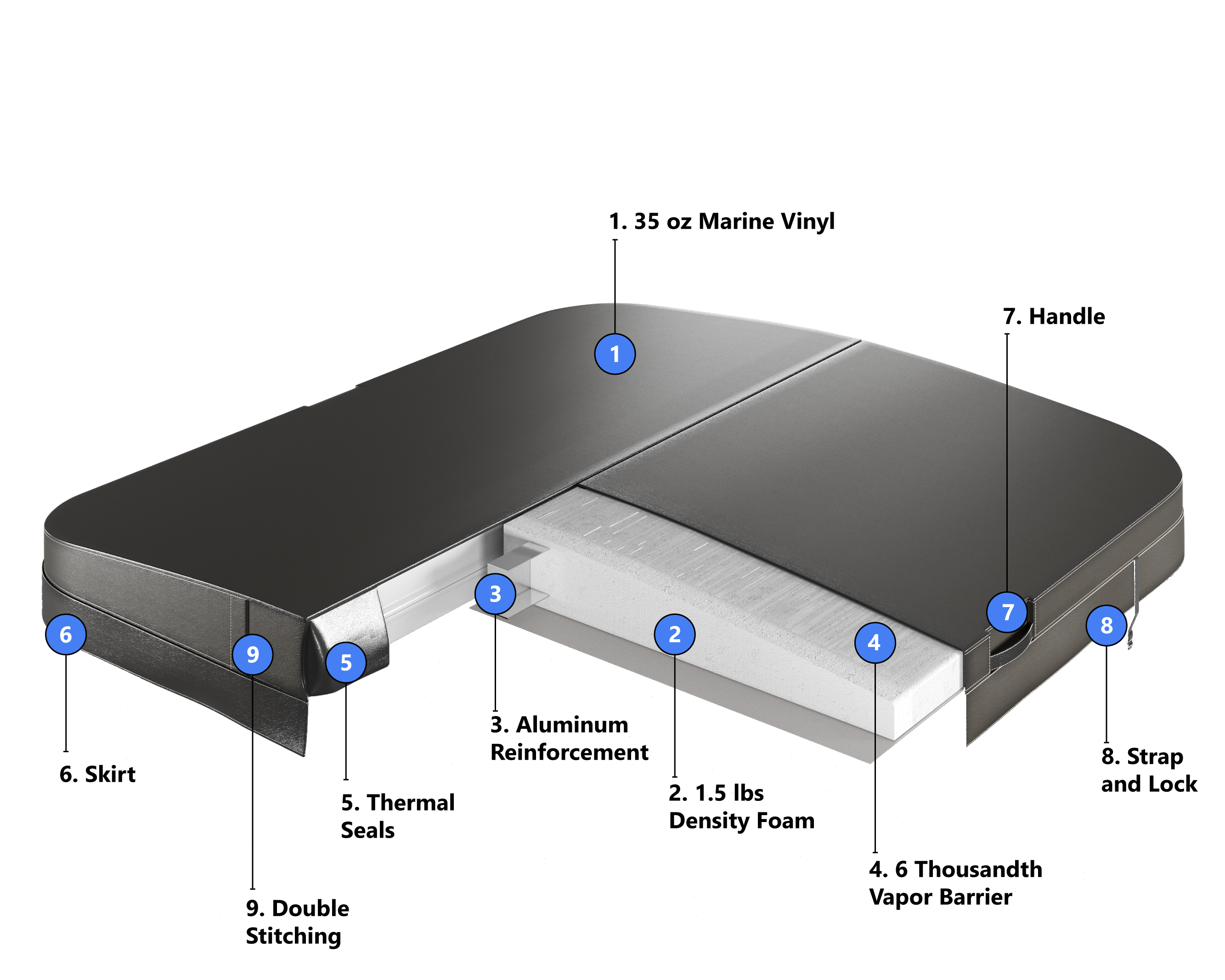 Alors que le vinyle fait l'affaire, les couvertures en polyester AquaTEX™ de Spa-Migo offrent le summum en matière de performance et de longévité :